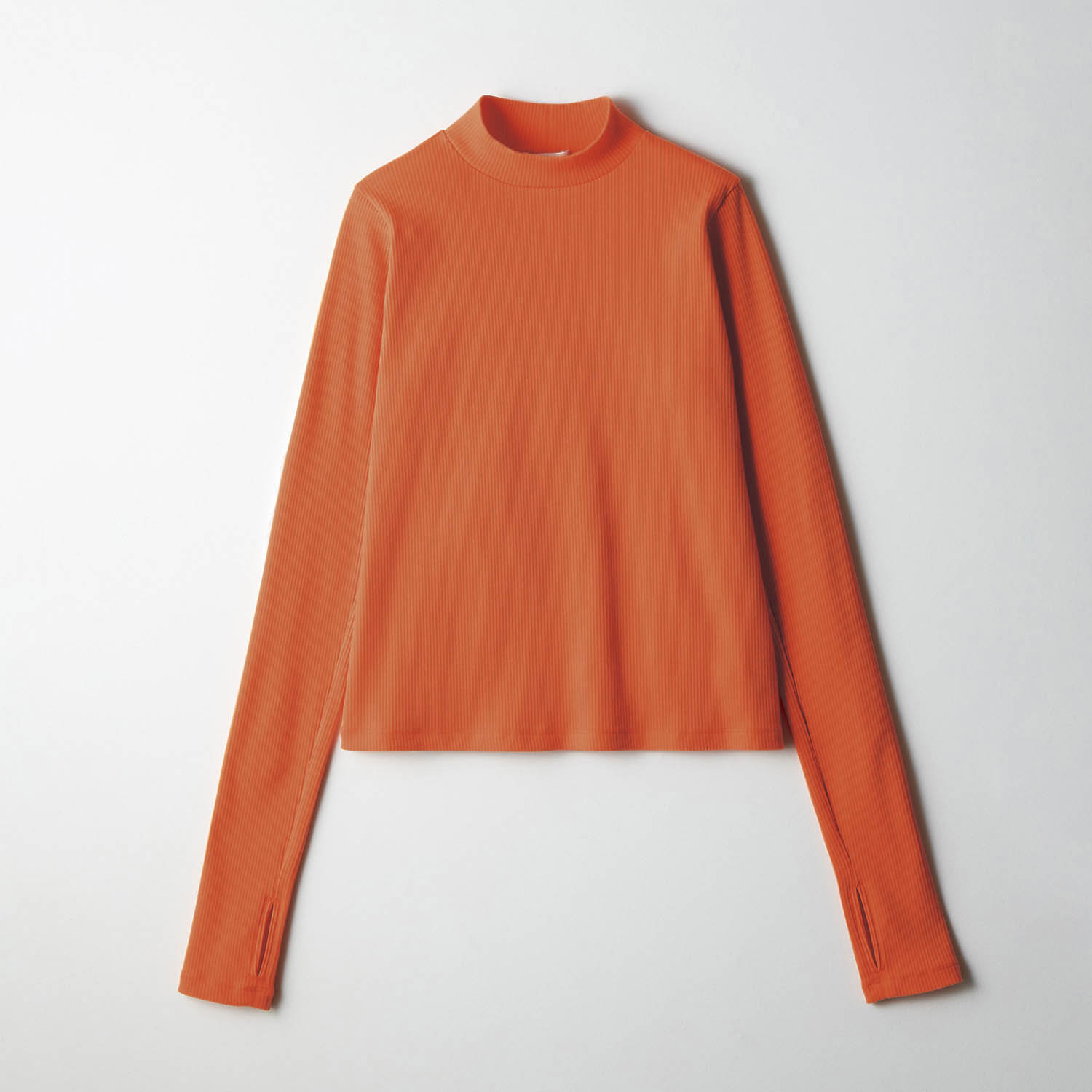 寒い季節に嬉しいフィンガーホール付きのハイネックプルオーバー。